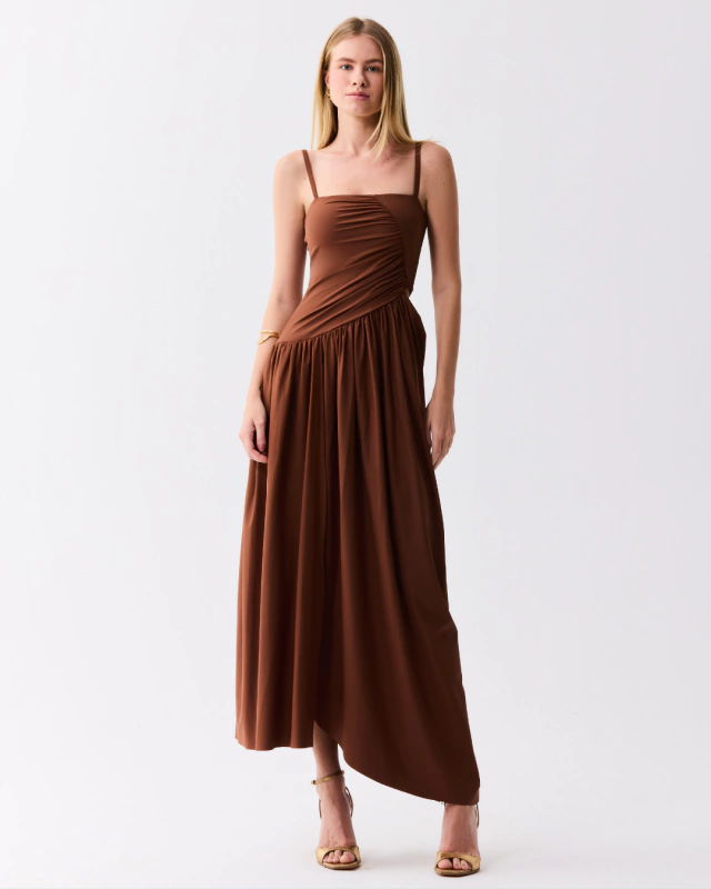 VESTIDO PAOLA: Cheio de atitude e presença, o vestido X chegou para quem quer estilo, praticidade e conforto. Confeccionado em um tecido com elasticidade, ele se adapta ao corpo sem a necessidade de nenhum tipo de fecho, possuindo o efeito franzido tanto no busto quanto na saia, dá um efeito leve e diferente à peça, complementado pela abertura na lateral da cintura, além disso, conta com alças finas reguláveis.